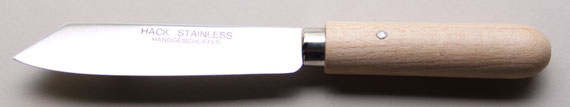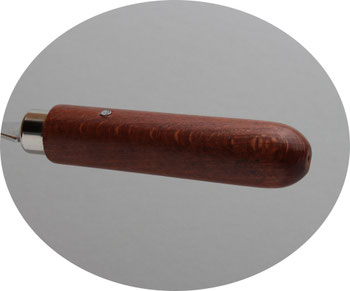 Der Griff ist aus heimischem Buchenholz gefertigt. Die runde Griffform liegt sehr angenehm in der Hand und ist daher im täglichen Gebrauch sehr beliebt.